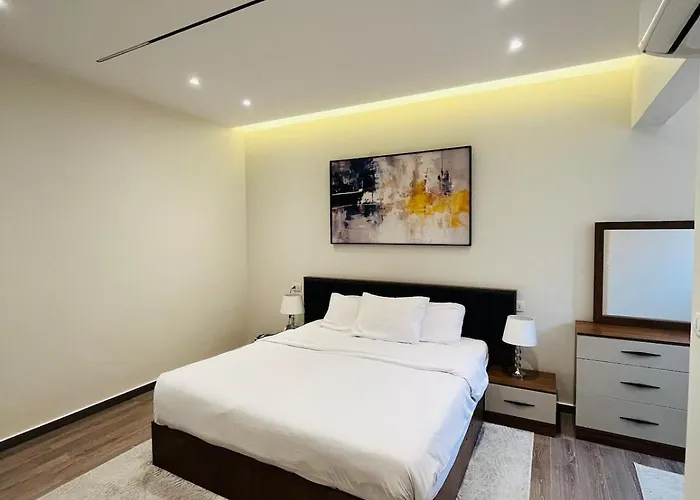 An equipped kitchen with an electric kettle, a refrigerator, and an oven is available as part of the apartment's self-catering amenities. El Giza train station is a 70-minute drive away.